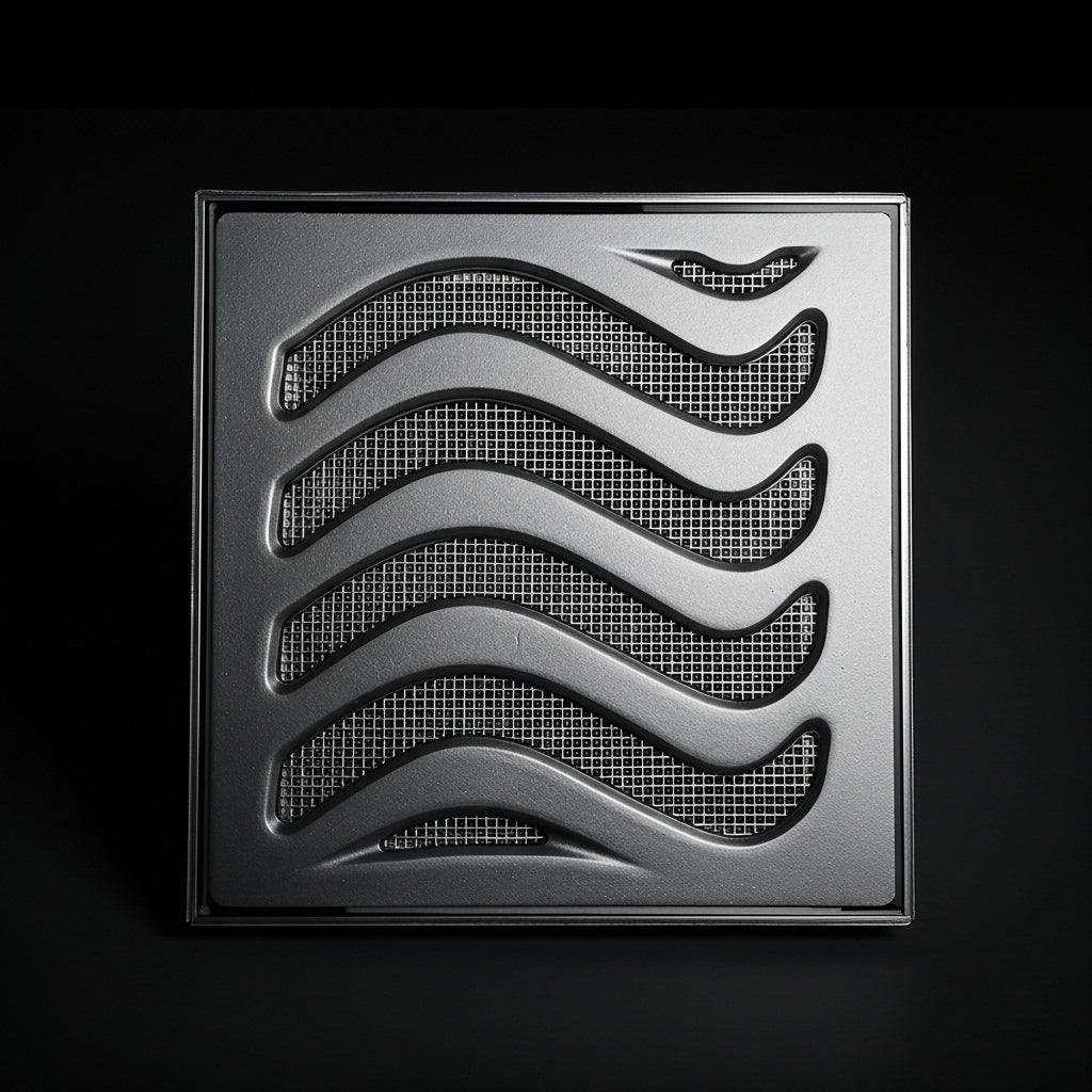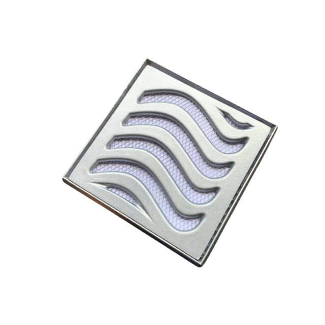 - Composição: Aro de fixação + grelha pluvial em alumínio